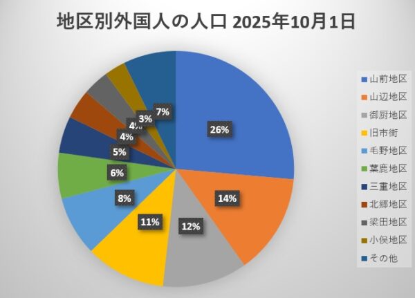 外国人の人口は毎月、町内別(地区別)に公表されています。