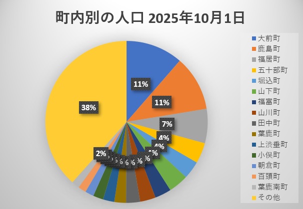 なお、町内別でいうと、3桁を超える町が15、最多が791人、最小が0人(8町内)です。