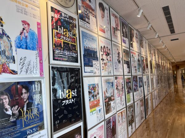 ホワイエにはこれまで来演したアーティストのポスターが掲示されており、Jポップを中心とした著名アーティストの公演が多く開催されていることが確認できた。地方都市においては大型公演が大規模ホールに集中する傾向がある中、本ホールではポップスや舞台公演など多様なジャンルを受け入れることで稼働率を確保している状況がうかがえた。