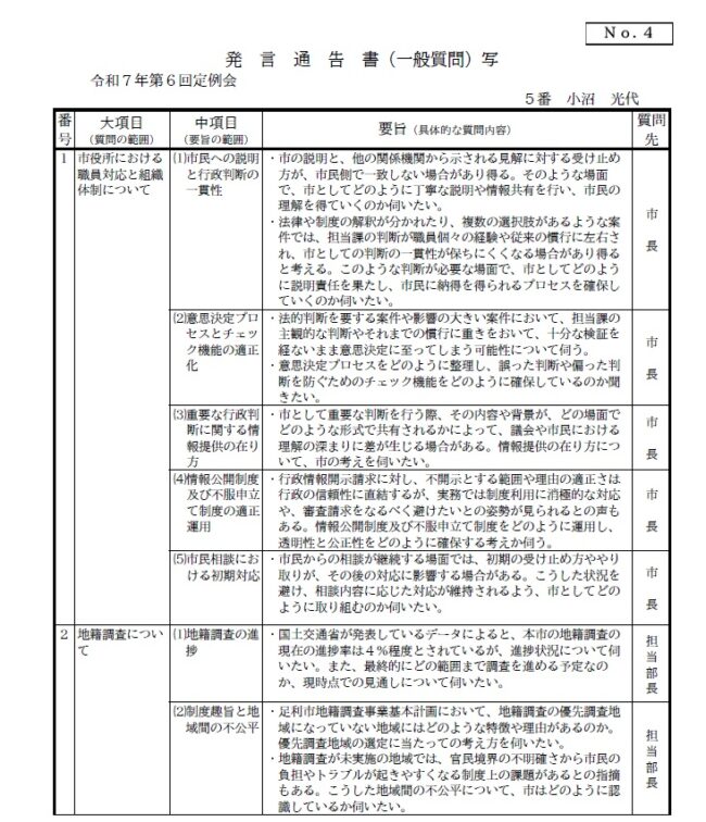 【議会】令和7年第6回市議会定例会 一般質問 ~職員対応と組織体制・地籍調査・外国人問題